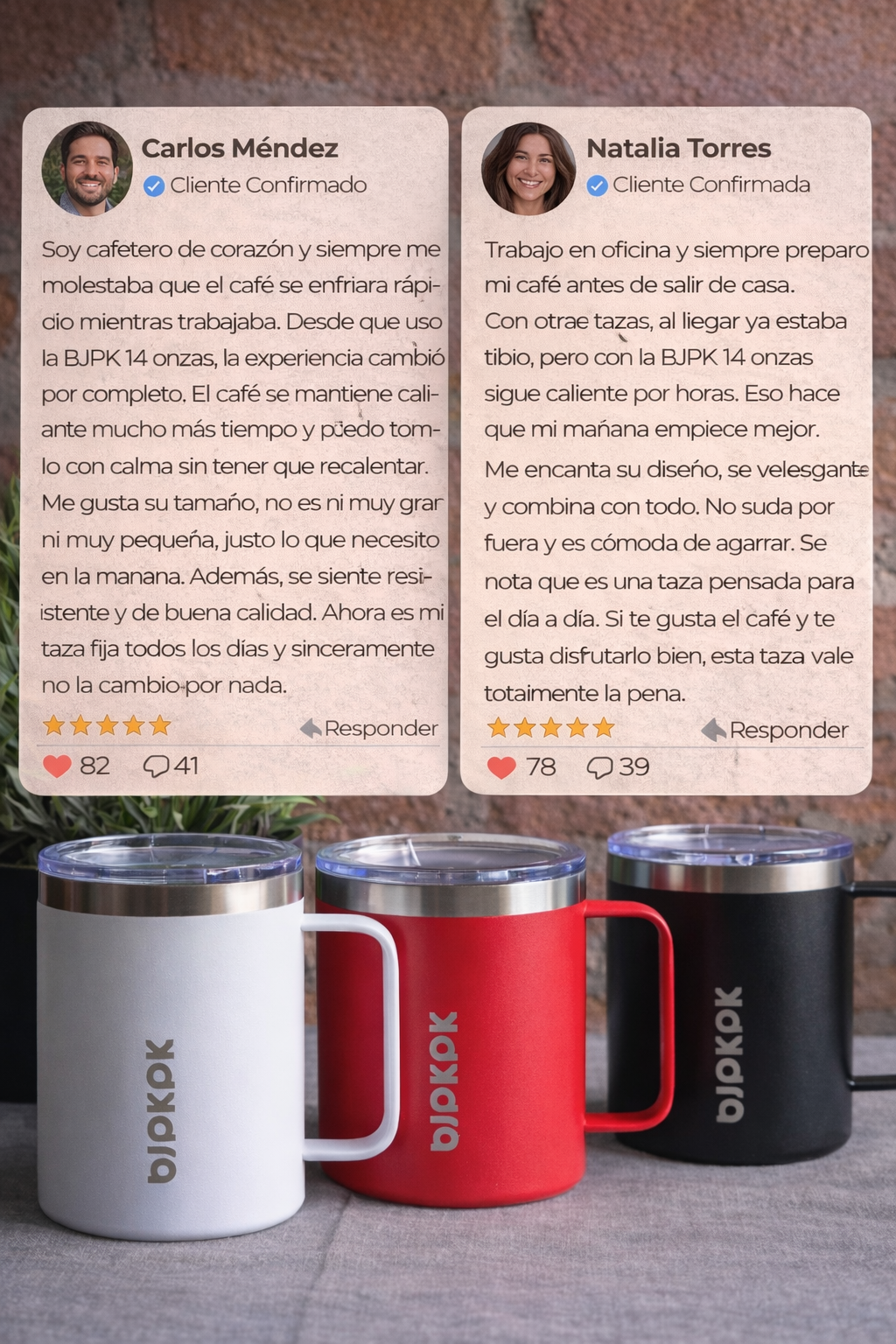 El BJPK 14 onzas es la taza ideal para quienes disfrutan el café sin afanes y sin que se enfríe a la mitad. Hasta 4 horas de temperatura